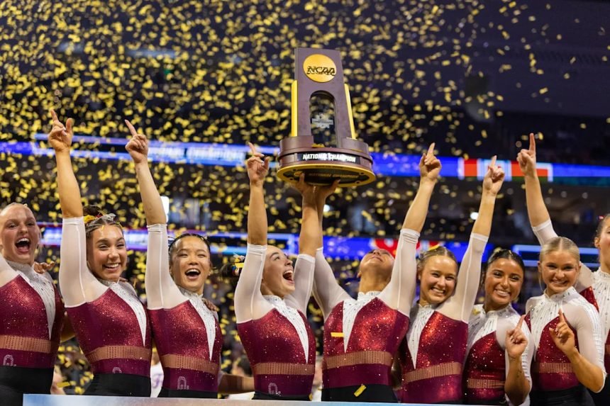 Once again, Oklahoma has won the 2026 NCAA women’s gymnastics championship, lifting the trophy for the fourth time in the past five years. The Sooners finished Saturday’s final with a score of 198.1625, surpassing runner-up LSU by 0.0875 after a tense final rotation.