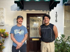 Co-owners Artie Burer (left) and Antonio Rodriguez (right) stand outside Águila Coffee’s new brick-and-mortar location at 1215 N. Orange Avenue. (©Jessica Battisti)