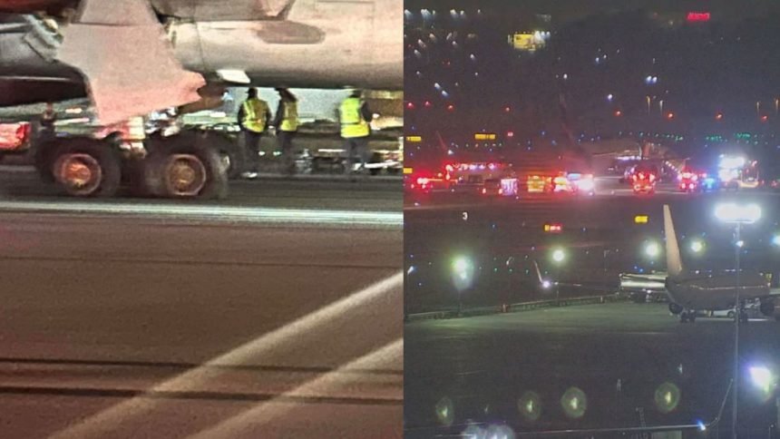 A woman who is a passenger on the plane said that after the landing, bathroom doors broke inside the plane, panels broke, insulation was coming from the ceiling and that passengers were still stuck on the plane as of 9:10 p.m. She told 11Alive’s Cody Alcorn they were off the flight by 9:40 p.m.