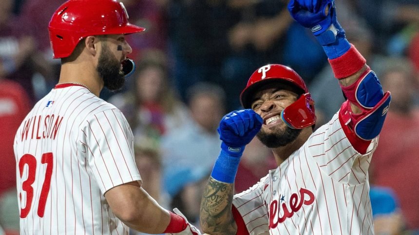 PHILADELPHIA (WPVI) — Edmundo Sosa hit three of Philadelphia’s team-record eight home runs, Kyle Schwarber had two to pad his National League lead and the Phillies wrapped up a first-round bye with an 11-1 victory over the Miami Marlins on Wednesday night.