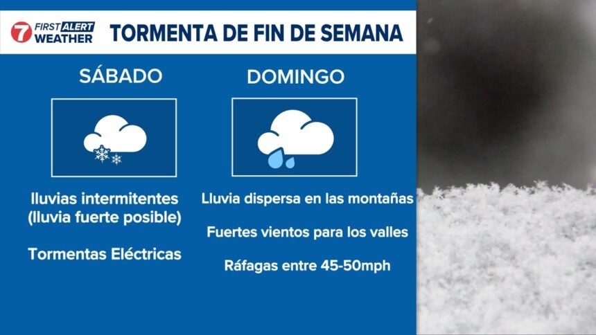 En las montañas, el aire más frío en altura podría provocar nevadas por encima de los 7,000 pies, con una posible acumulación de 2 a 6 pulgadas.