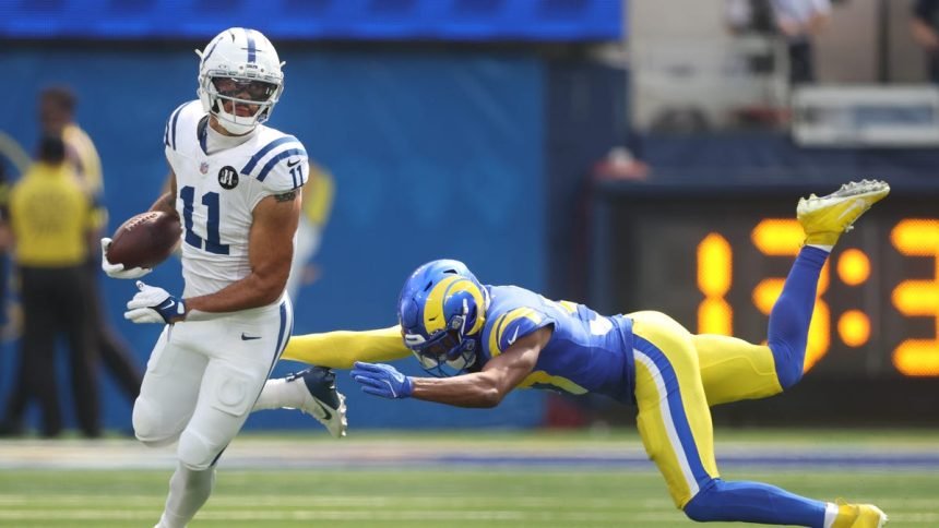 Colts 3, Rams 3, 4:55 left 1Q: The Colts commit consecutive penalties costing them 25 yards. Tyler Warren has 2 catches for 29 yards on the drive. Anthony Gould starts the drive with a 38-yard kickoff return.