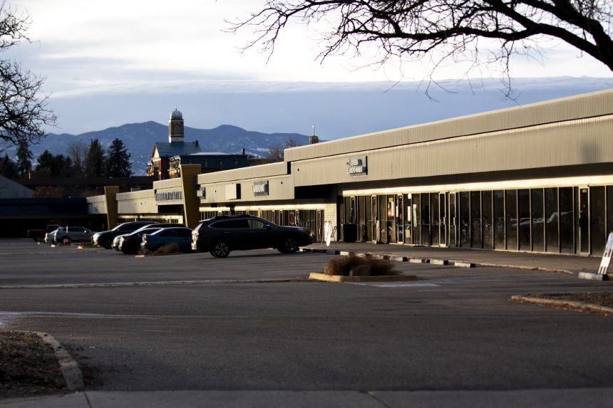 A strip mall on Federal Boulevard owned by Regis University, on the edge of its north Denver campus. Dec. 9, 2025.