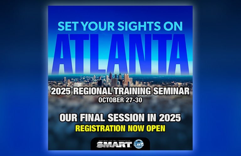The Atlanta RTS begins on Monday, October 27, 2025, with an evening Welcome Reception. The training will cover topics such as local governance, the roles and responsibilities of local presidents, secretaries, treasurers, legislative representatives, and local chairpersons in member advocacy, an overview of the SMART Constitution, and other key subjects.