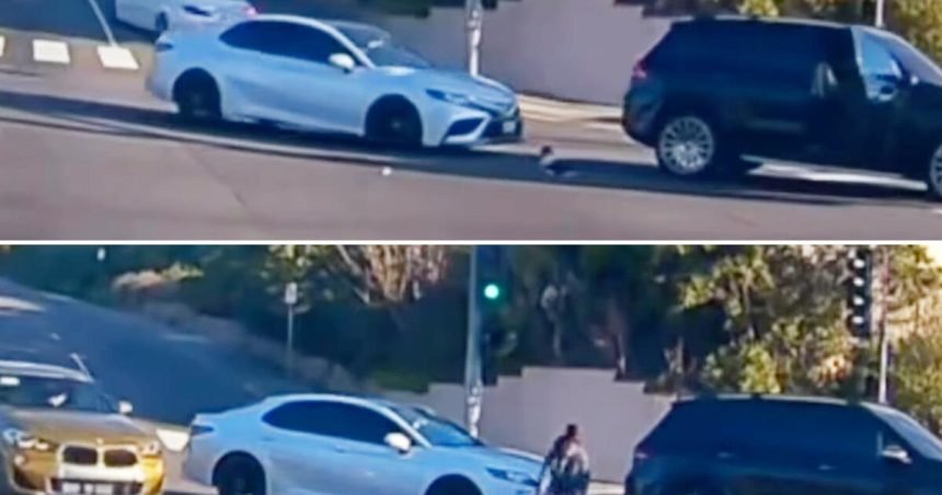 The shocking recording shows the front passenger door of a black SUV opening and a tiny body tumbling out and skidding along the asphalt as the vehicle makes an eastbound turn onto West Malvern Avenue from North Euclid Street in Fullerton.