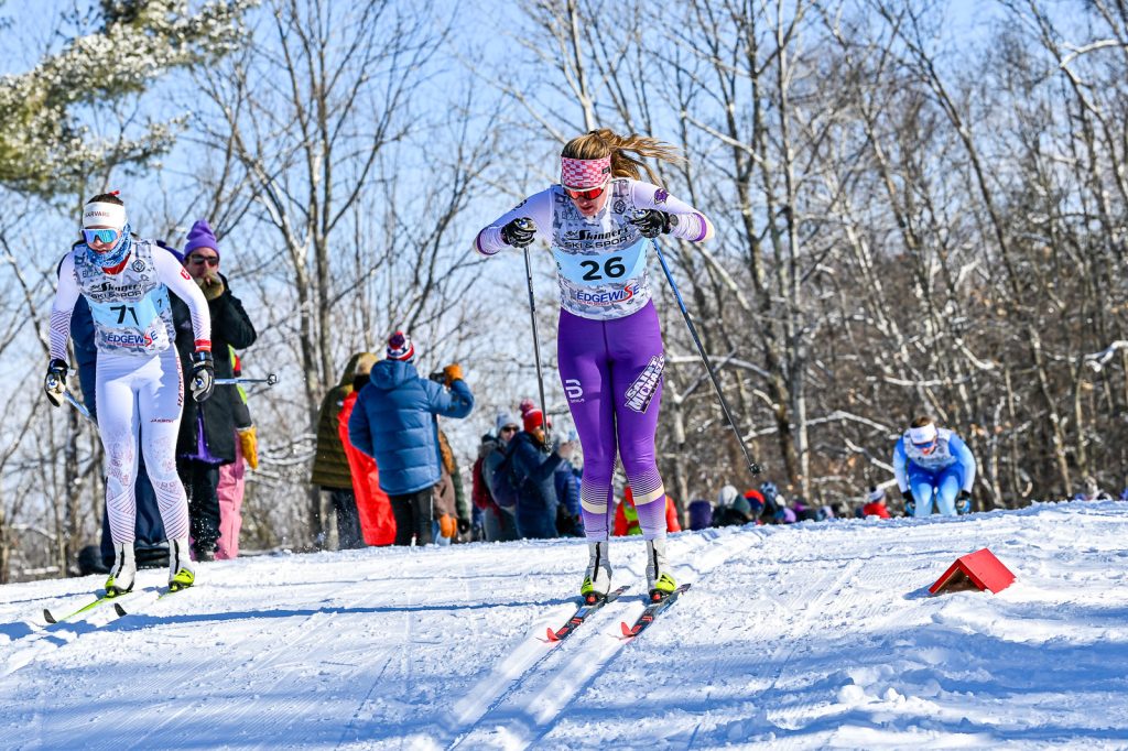 Hendricks’ best showing — a 39th in the 20-kilometer freestyle — came at the St. Lawrence Carnival in Lake Placid on Jan. 17. The cold, snowy conditions were quite a bit different than the wet slop she endured the last time she raced at Mt. Van Hoevenberg as an SSCV skier at the 2024 Junior Nationals.