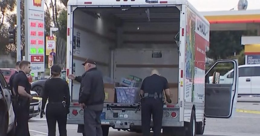About 4:30 a.m., burglars donning ski masks broke into a warehouse in the 1100 block of East 32nd Street and began loading items into a U-Haul truck, LAPD Officer Norma Eisenman said.