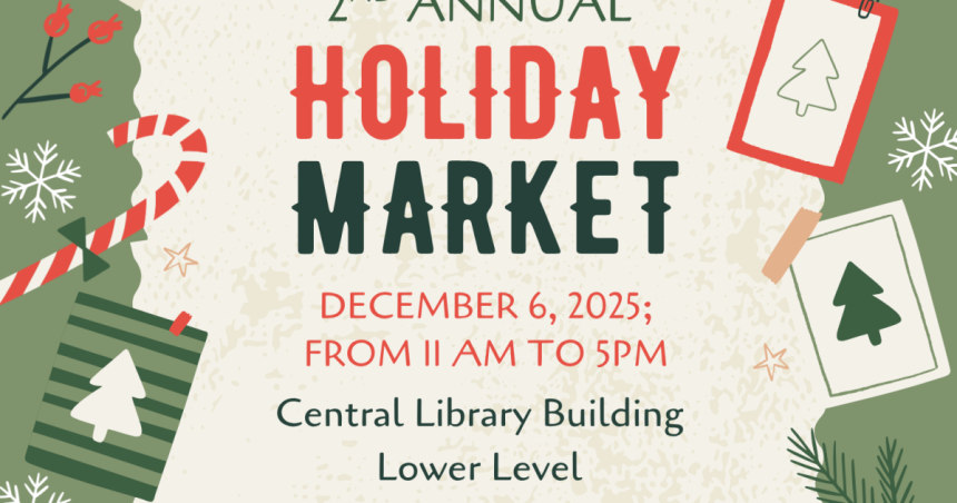 Join us on Saturday, December 6 from 11:00 AM to 5:00 PM for the Second Annual Holiday Market at The Book Cellar, located in the lower level of the San Antonio Central Library. Whether you’re getting an early start on gift-giving or simply want to soak in the holiday spirit, this festive community event is the perfect way to kick off the season. Browse a curated collection of local artisans, makers, and specialty vendors offering everything from handmade home goods and holiday décor to one-of-a-kind books, gourmet treats, and thoughtful gifts.