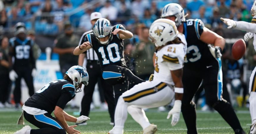 CHARLOTTE, N.C. — For a moment, the New Orleans Saints looked like they’d made a huge play to preserve a 10-7 lead when Nathan Shepherd got his hand on a 48-yard field goal attempt with 6:29 remaining in the third quarter.
