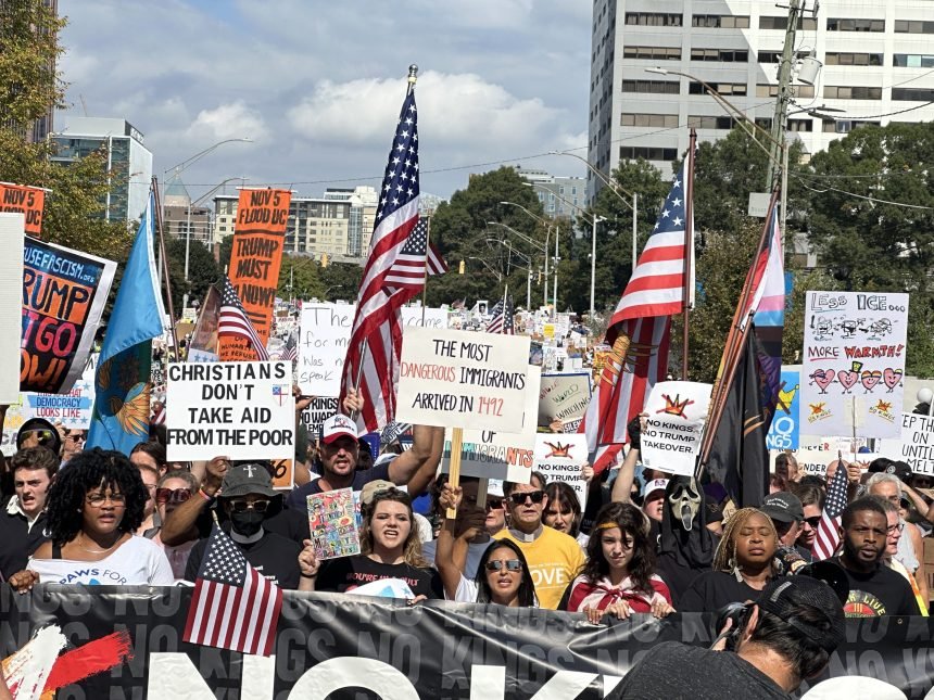 Thousands of people gathered at the Atlanta Civic Center and marched through downtown to the State Capitol on Saturday for the city’s second “No Kings” rally, sending a message that they’re unafraid to exercise their free speech rights and expect their local leaders to do the same.