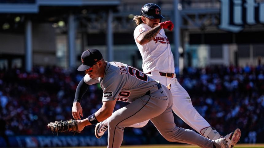 Tigers center fielder Parker Meadows led off with a single that was stopped by a diving Brayan Rocchio at second base. Second baseman Gleyber Torres then reached on an error by Guardians center fielder Chase DeLauter dropping an easy fly ball in center field. DeLauter is making his MLB debut today as the team’s No. 2 prospect.
