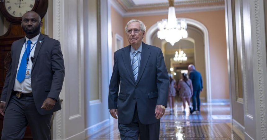 On his way to the Senate floor to cast a vote, video taken by Sunrise Movement and posted to X shows McConnell holding the arm of a security member walking through a Capitol hallway. As someone approaches him to ask a question, he let go of the man’s arm, walking on his own. A few seconds later, he fell.