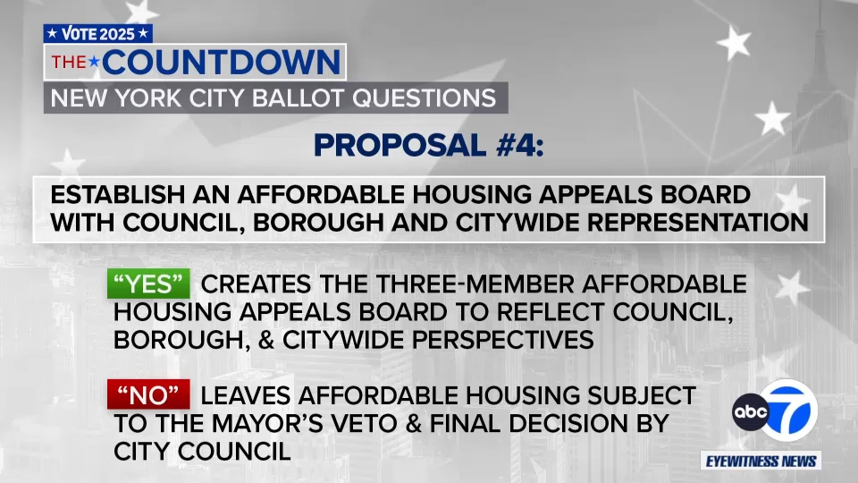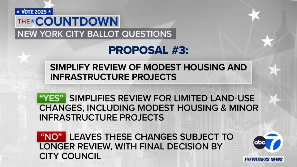 NEW YORK (WABC) — In addition to voting for the next mayor of New York City, voters will also answer six ballot questions when they head to the polls for the 2025 election.
