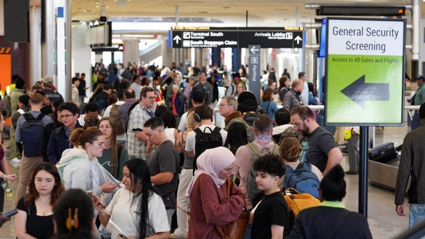 Travelers face long TSA lines as ICE agents deploy to airports during the partial government shutdown.