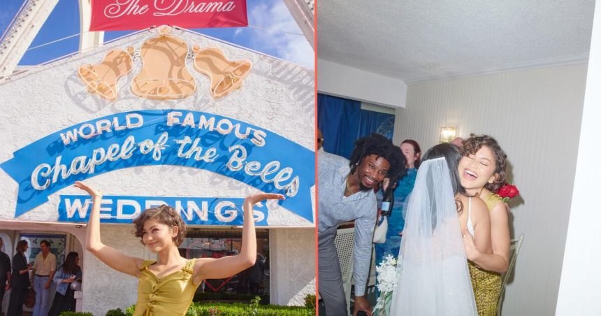 Zendaya made a surprise appearance over the weekend at A24’s one-day Drama Wedding Chapel activation in the world’s wedding capital of Las Vegas. She stepped into a real ceremony (and had heads turning) as part of the promotional rollout for The Drama, her upcoming film with Robert Pattinson. The pop-up was tied to the movie’s April 3 theatrical release and turned a Las Vegas chapel into a themed event space for couples getting married that day.